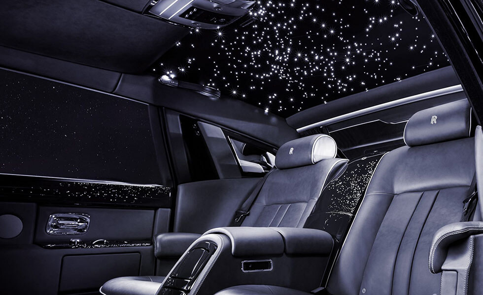 El revestimiento Shooting Star del techo sigue siendo la estrella (nunca mejor dicho) del interior, pero en el acabado Black Badge se cambia el motivo iluminado 'Ghost' del salpicadero, enfrente del pasajero, por el logotipo del infinito, que también aparece en las placas del umbral y en otros lugares del habitáculo.