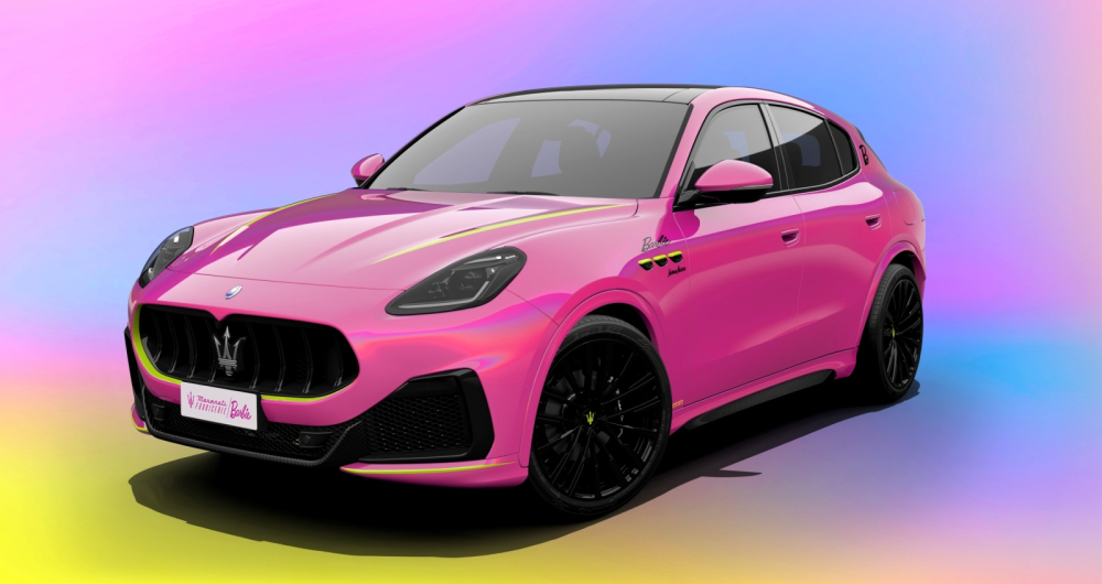 Pues su último complemento es un Maserati Grecale con la carrocería pintada completamente del color rosa palo tan característico con los que Barbie pintar sus coches.